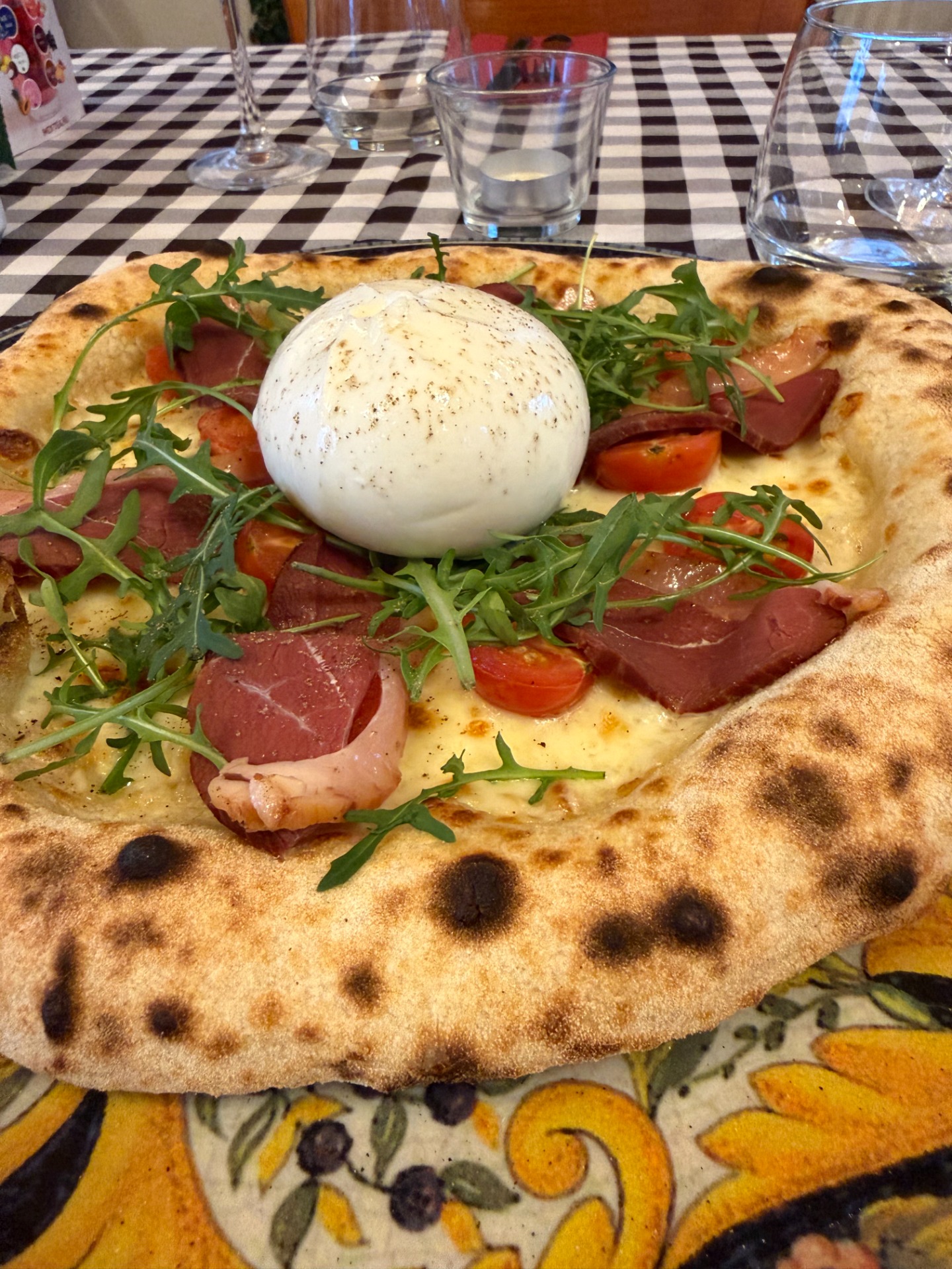 Fior di latte, füstölt kacsamell, koktélparadicsom, rukkola, burrata